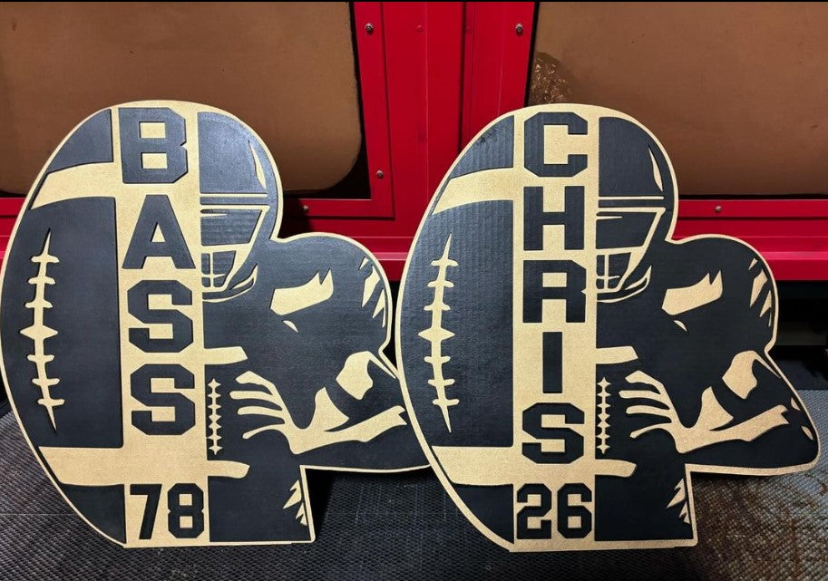 This is an awesome alternative to wood or acrylic. Laser cut heavy duty cardboard is perfect for game night, banquets, senior night and graduation.